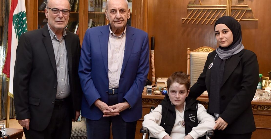 استقبل رئيس مجلس النواب نبيه بري عائلة الشهيد شادي شرارة زوجته الجريحة أماني بزي وابنتها الناجية من المجزرة الطفلة الجريحة أسيل شرارة وجد العائلة الاستاذ سامي بزي.